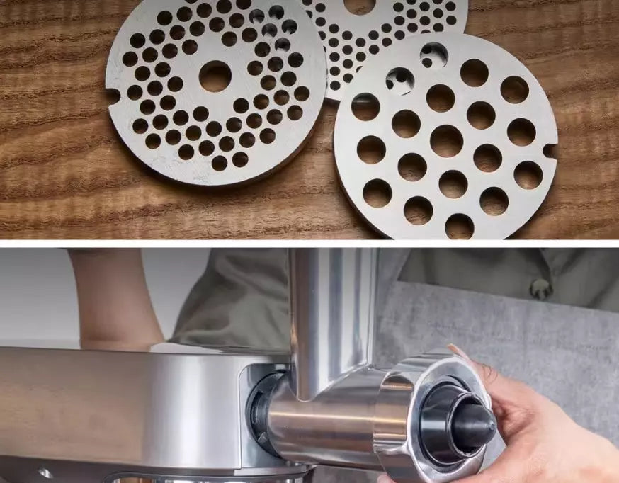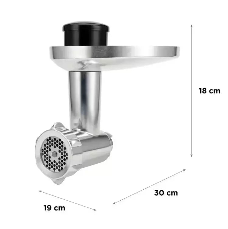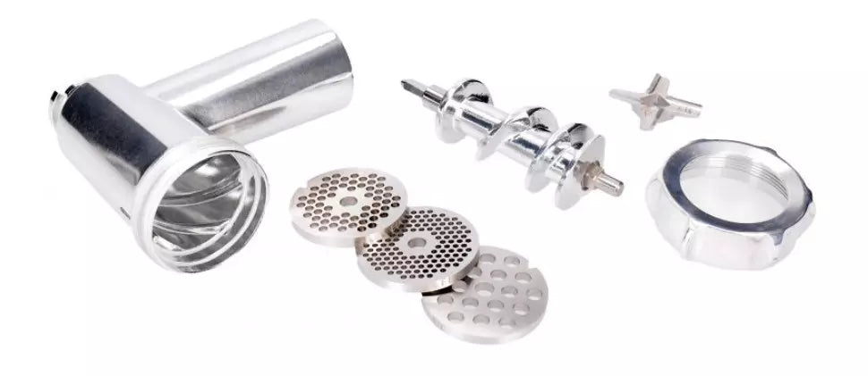 Pièce de rechange haute performance qui permet de préparer une grande variété de plats avec ses trois grilles fine (3mm), moyenne (4,5mm) et grosse (8mm). Comprend un embout à saucisses pour saucisses et un kebbé pour plats spéciaux.