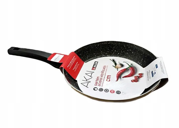 Qualité et Résistance : Fabriquées en acier vitrifié, les poêles ALZA Akai assurent durabilité et résistance pour une utilisation prolongée dans votre cuisine. La double couche d'émail extérieur de couleur rouge non seulement ajoute une touche de style, mais protège également la surface de la poêle, garantissant une longue durée de vie.