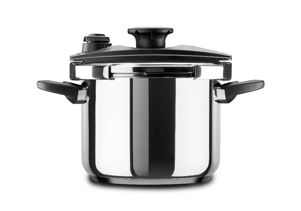 Marmite de {{6 litres}} au design stylisé et fonctionnel. Fabriquée en {{acier inoxydable}}, elle est équipée d'une {{soupape automatique à double niveau}}, d'une poignée de fermeture et d'un {{fond encapsulé}} pour une distribution uniforme de la chaleur. Convient pour l'{{induction et le lave-vaisselle}}.
