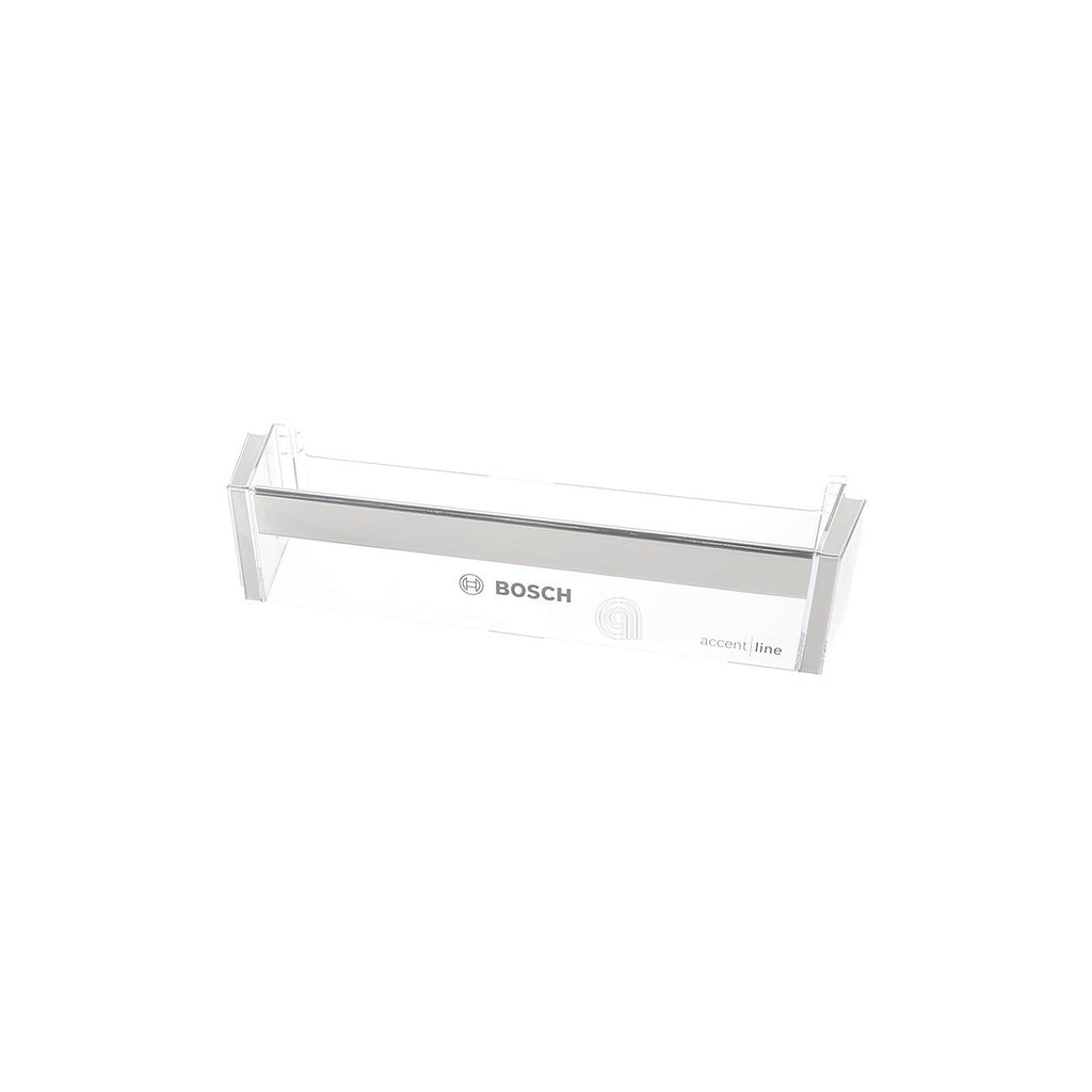 Ce balcon pour réfrigérateur est une pièce de rechange originale Bosch conçue pour remplacer des pièces usées ou endommagées à l'intérieur des réfrigérateurs de la marque Bosch. Il sert à stocker des aliments dans la porte du réfrigérateur, garantissant une organisation correcte et une utilisation optimale de l'espace.