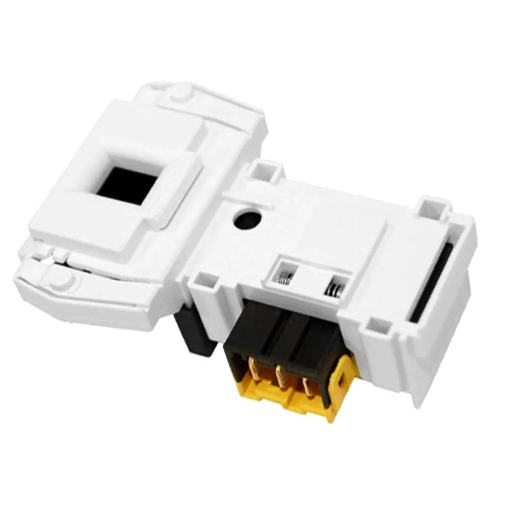 Serrure électrique porte lave-linge Candy, Hoover. La serrure sert de verrou de porte pour éviter l'ouverture pendant le lavage et fait également office d'interrupteur de l'appareil.