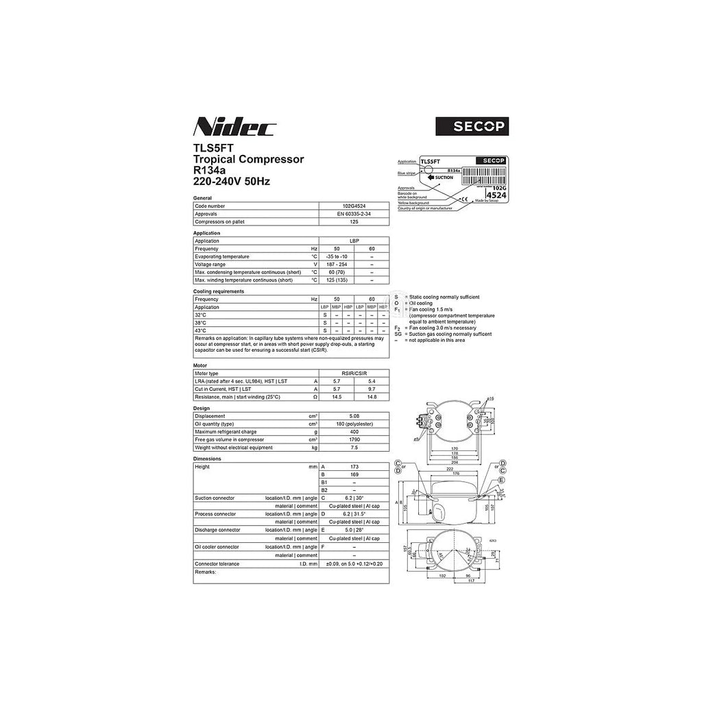 COMPRESSEUR SECOP TLS5FT 1/6++ R134A