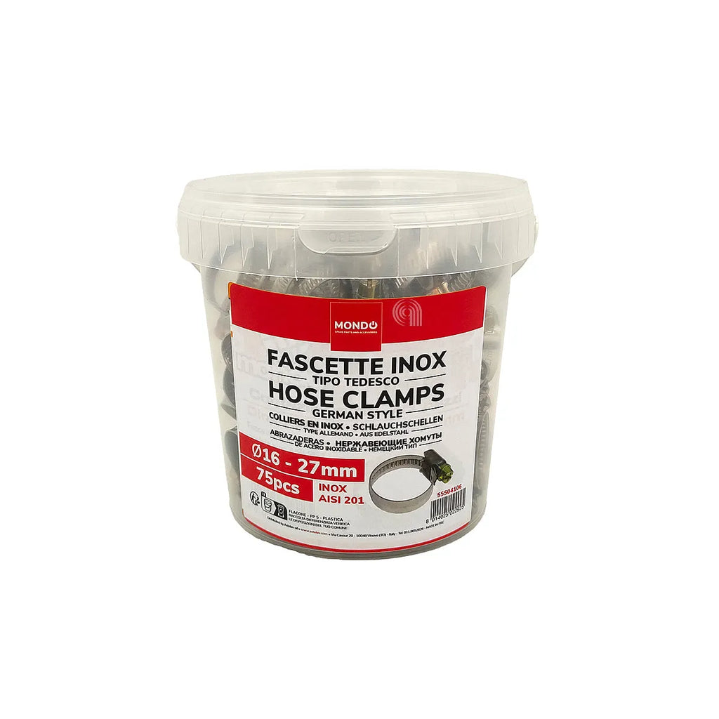 EMBALLAGE DE 75 COLLIERS EN ACIER INOXYDABLE DE 16 À 27 MM MONDO