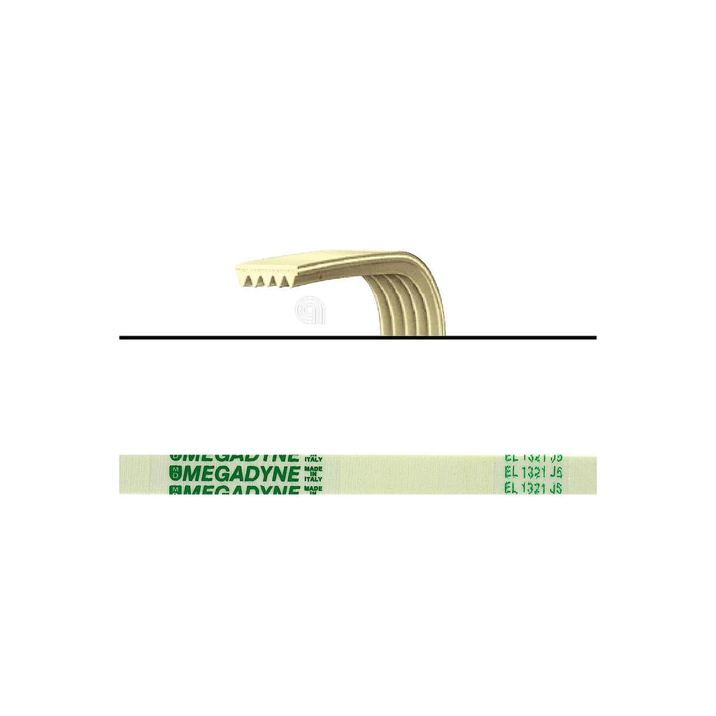 Courroie de transmission adaptable de la marque UNIVERSALE, conçue pour les lave-linge. Cette pièce de rechange, d'une longueur de 1321 mm, avec 5 nervures et un profil de rainure de type J, transmet le mouvement du moteur au tambour, garantissant le bon fonctionnement du cycle de lavage. Fabriquée en polyuréthane, cette courroie élastique (EL) offre durabilité et ajustement précis. C’est une pièce de rechange de haute qualité, compatible avec un large éventail de marques et de modèles.