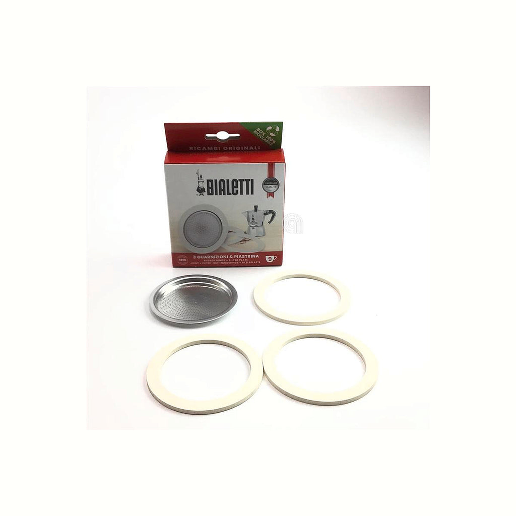 Ce kit comprend 3 joints et la plaque pour cafetière moka originale Bialetti de 9 tasses, une pièce de rechange indispensable pour maintenir le bon fonctionnement et l’étanchéité de votre cafetière italienne.