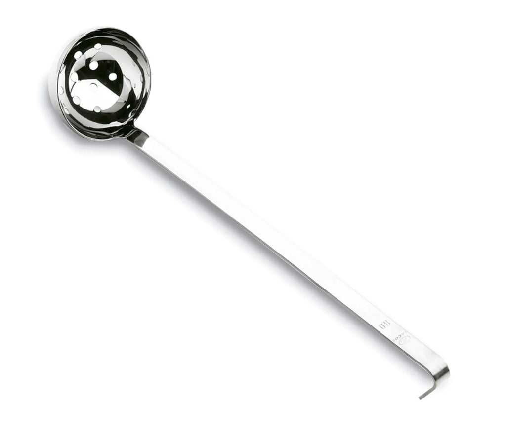 La louche perforée fait partie de la collection d'ustensiles UP fabriqués en acier inoxydable de haute qualité.