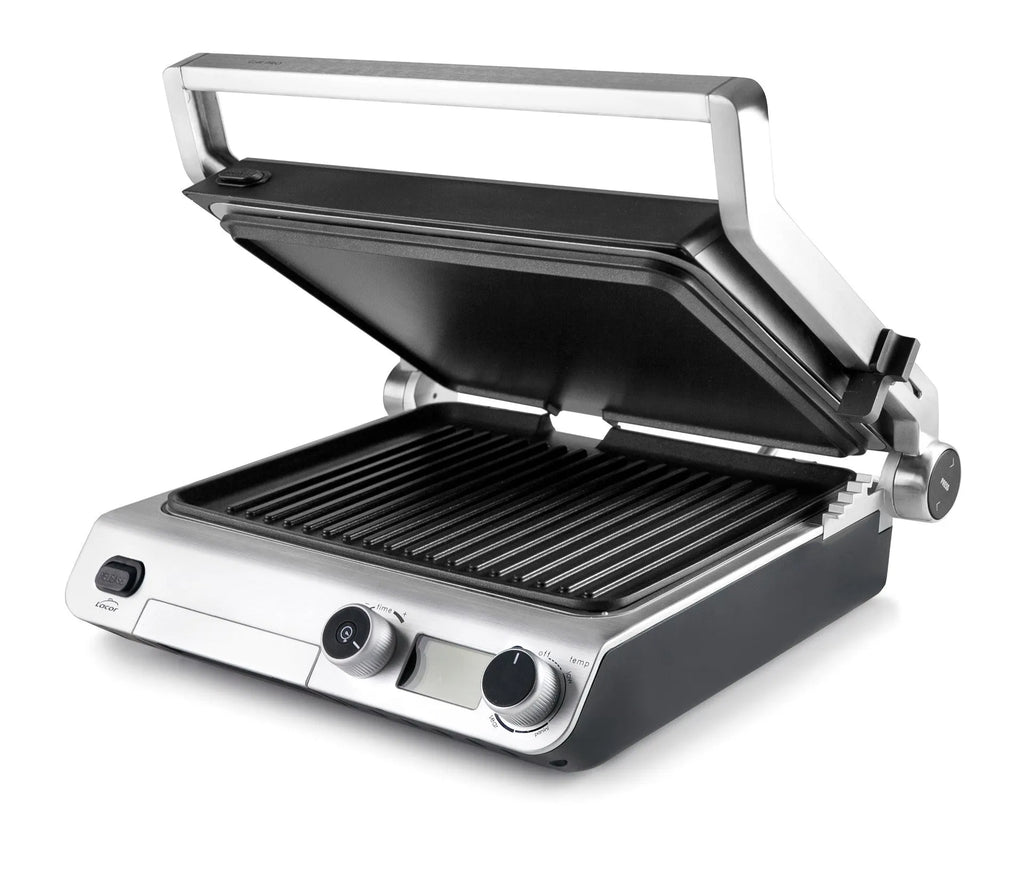 Double zone de cuisson : 1) Grill (27x22 cm) : idéal pour griller viandes, poissons, fruits de mer, hamburgers ou légumes. 2) Lisse (27x22 cm) : idéal pour préparer crêpes, œufs, toasts ou légumes.
