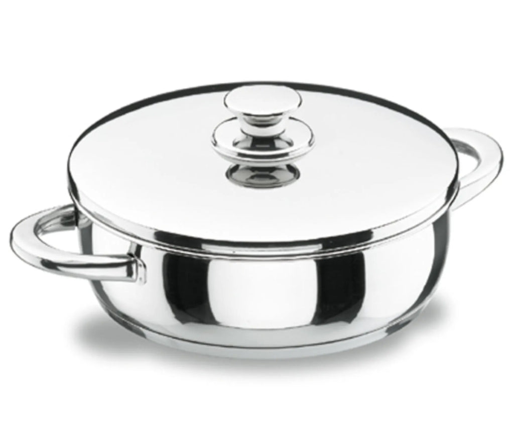 L'ensemble de la pièce (corps, anses et poignées) est fabriqué en acier inoxydable 18/10.
