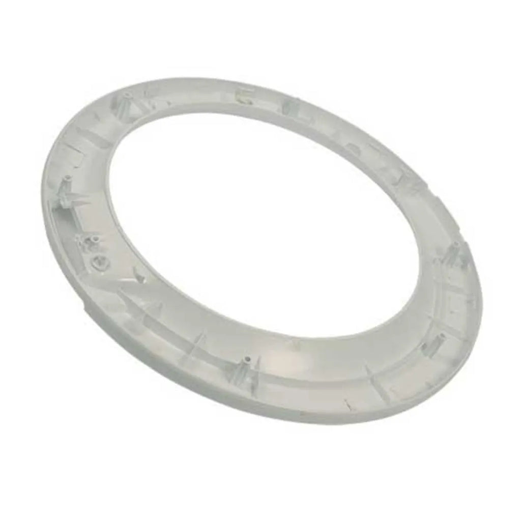 Cadre extérieur de la porte de la machine à laver Électrolux et Zanussi. Anneau de porte extérieur pour le montage du couvercle de la machine à laver. Ce cadre extérieur est celui qui retient la vitre de la porte. Attention au serrage des vis, si elles sont trop serrées, le plastique peut se fendre.