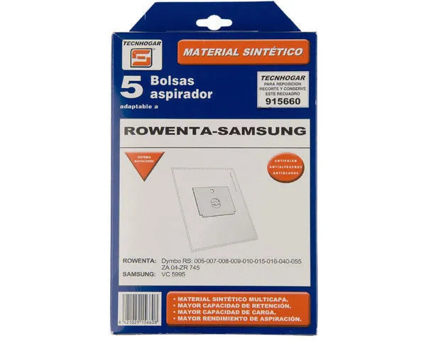 Sac d’aspirateur synthétique toutes marques Modèle : ZR745, Dymbo RS005/007/008/009/010/012/015/016/040/055 Code d’origine : 9001961292 915660 SAMSUNG ROWENTA 5 unités. Dymbo RS005/007/008/009/010/012/015/016/040/055