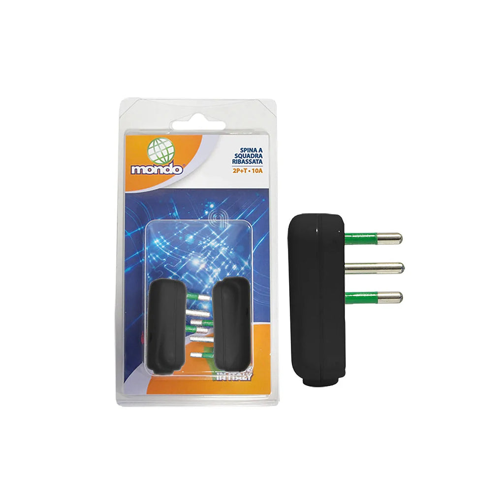 PRISE 10A À ÉQUERRE NOIRE AVEC TERRE MONDO