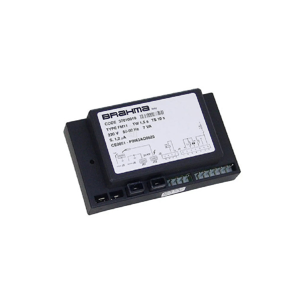 SIME, BRAHMA. Cette unité de commande d’allumage FM11 est une pièce de rechange adaptable de haute qualité, conçue pour les chaudières SIME. Elle est compatible avec la référence d’origine SIME 6178830 ainsi qu’avec la référence 5171626. Cette centrale d’allumage, modèle Brahma FM11 37010010, est essentielle au bon fonctionnement de votre chaudière, garantissant un allumage sûr et efficace. Idéale pour remplacer des unités défectueuses sur des modèles tels que Sime Murelle CE 20, Murelle 20 BN CE IONO et Murelle 20 TX CE IONO. Fabriquée avec des composants durables pour assurer une longue durée de vie et un rendement optimal.
